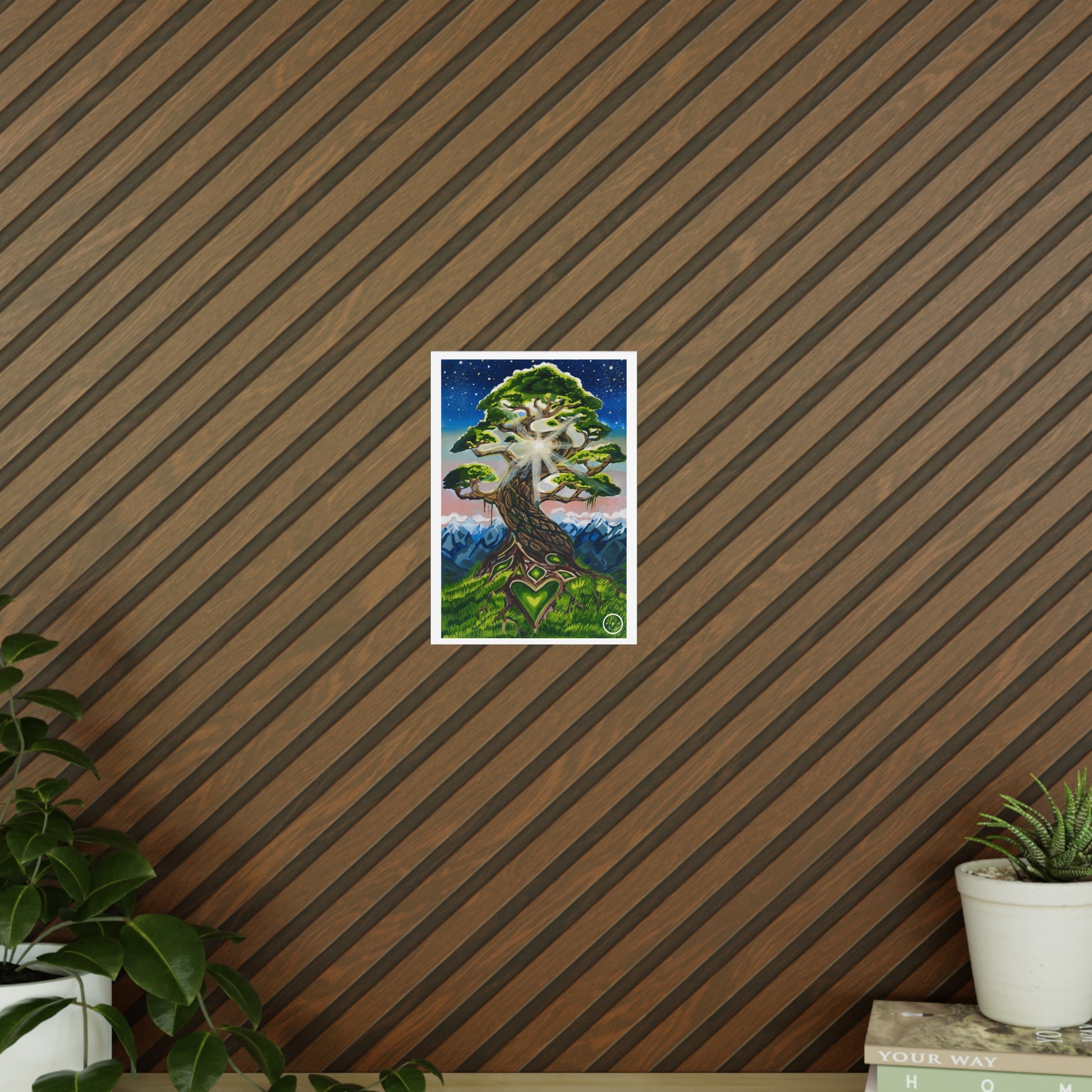 Rooted, yet stretching towards the Cosmos, originally painted with gouache. The print is available in two sizes.